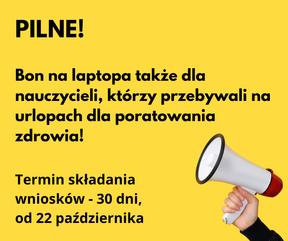Dzięki interwencji ZNP Ministerstwo Cyfryzacji znowelizowało rozporządzenie ws. wsparcia cyfrowego dla nauczycieli. Tym samym uprawnieni nauczyciele, którzy w okresie składania wniosków korzystali z urlopu dla poratowania zdrowia, mogą wnioskować o wsparcie w czasie 30 dni od 22 października.
